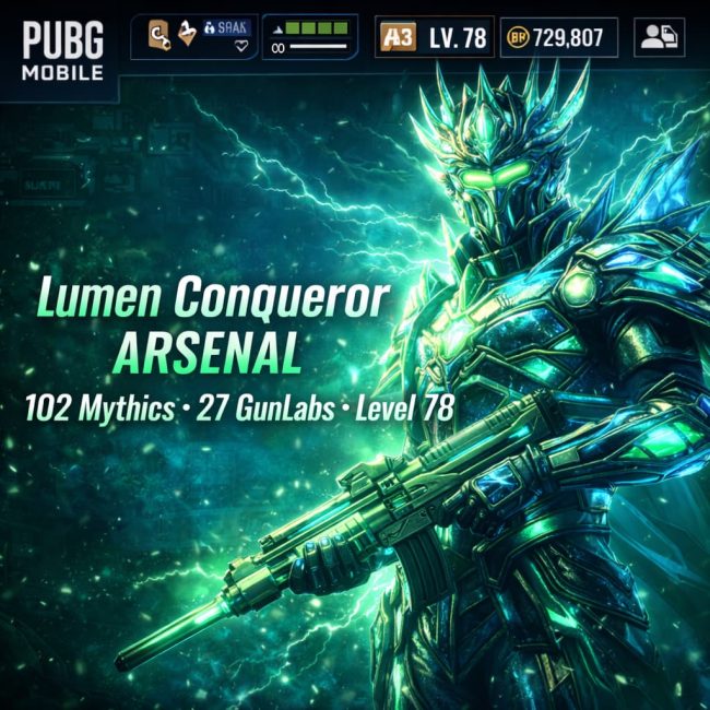 Lumen Conqueror Arsenal | 102 Mythics | 27 GunLabs | Level 78